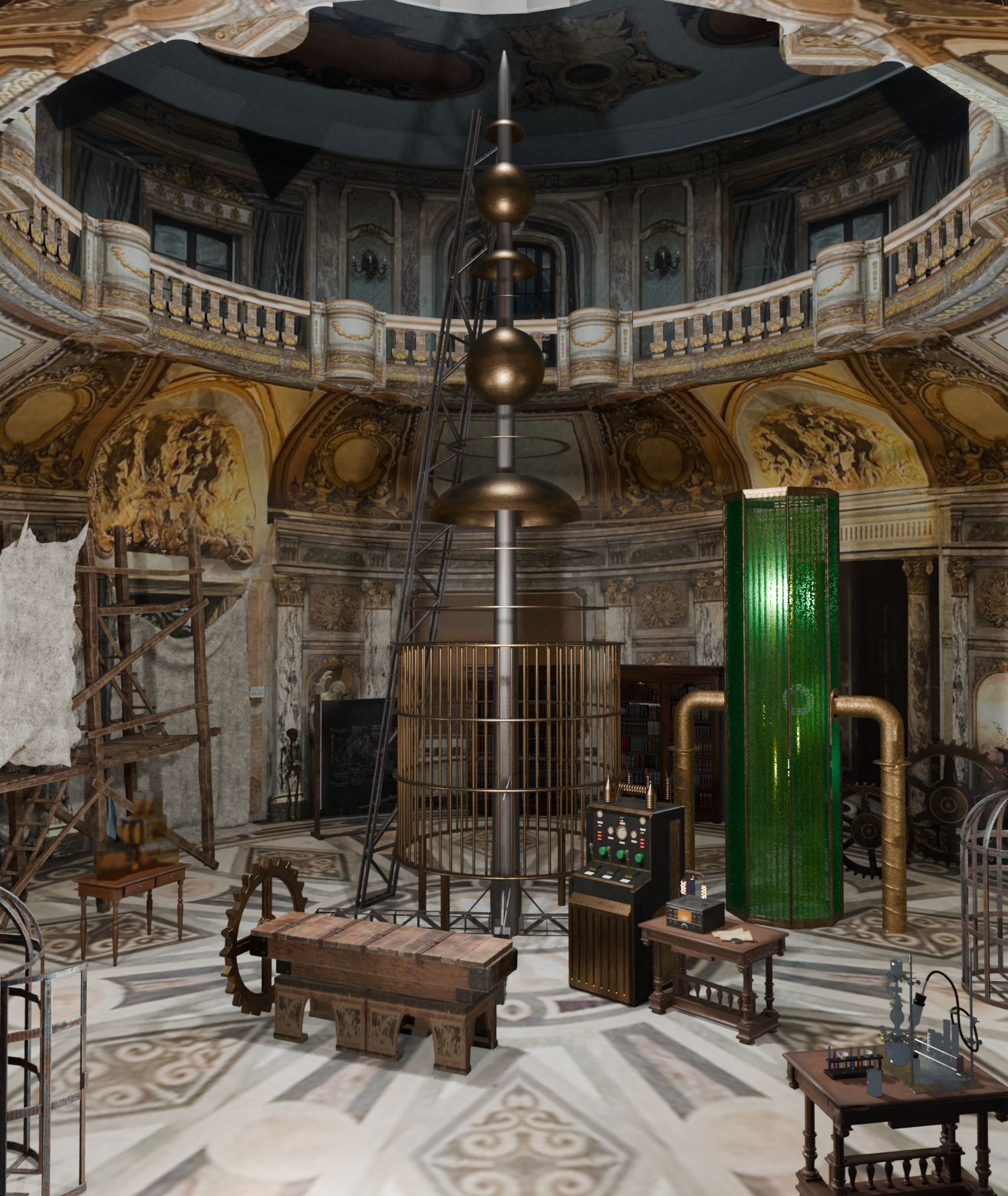 I collaborated with a set decorator on a pharmaceutical (pain reliever) TV commercial, providing visual development and design assistance for key set elements. The commercial’s environment was inspired by Frankenstein, requiring the recreation and reinterpretation of iconic elements based on classic films and visual references. My role was essential in supporting the art and camera departments by helping them visualize real-scale objects and set dimensions. I designed the main props and produced detailed, dimensioned visuals that guided the crew in fabricating and building the elements in real life.